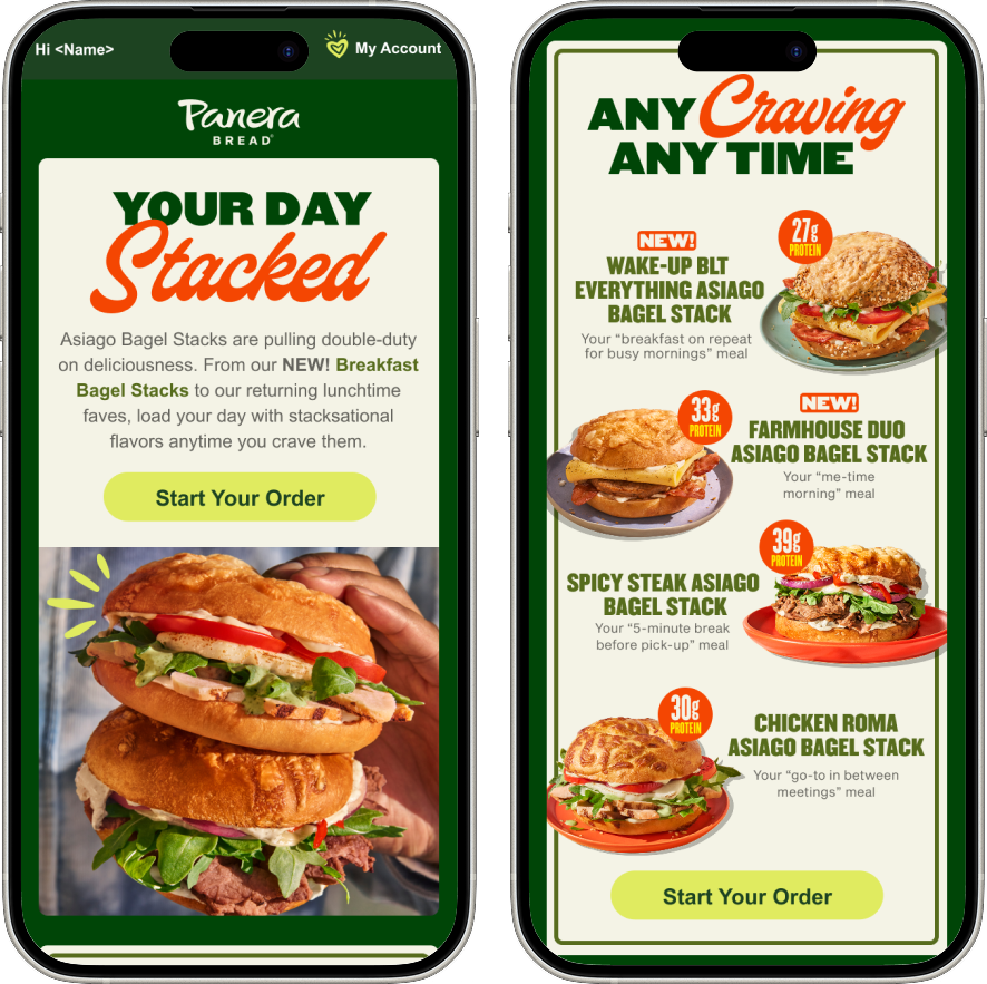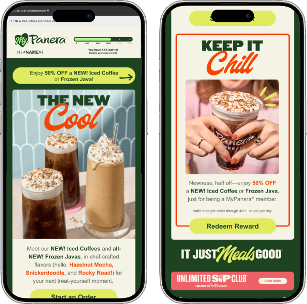 I created designs that reached a wide range of customer segments, from new prospects to lapsed members, across key programs including Unlimited Sip Club and MyPanera. Each project involved managing and delivering assets across multiple touchpoints, including email marketing, e-commerce, social media, and in-app updates, ensuring brand consistency and strategic alignment throughout the customer journey.